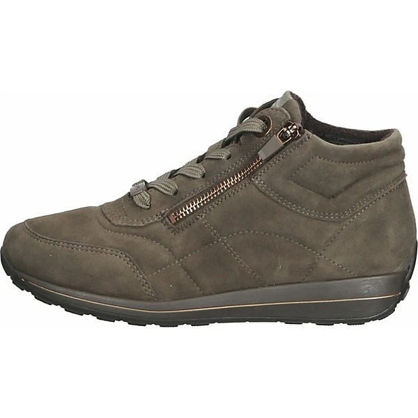 Für den perfekten Herbstlook zu coolen Basic-Jeans, ist dieser Sneaker von ara ein echtes Muss! Das Obermaterial aus hochwertigem Veloursleder überzeugt auf Anhieb durch seine Geschmeidigkeit und den hohen Komfort. Nach Belieben lässt sich das High Soft-Wechselfußbett herausnehmen und durch eigene Einlagen austauschen. Im Bereich Funktionalität kann man die Verbindung von praktischem Reißverschluss und regulierbarer Schnürung nicht übertreffen.