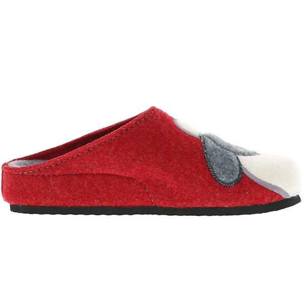 Das Obermaterial wurde aus ökologischem Wollfilz gefertigt und ist somit umweltfreundlich und angenehm weich zu tragen. Da das Innenmaterial und die Decksohle ebenfalls aus Filz bestehen werden die Füße angenehm warm gehalten. Optisches Highlight ist das gestickte Schaf im Vorderfußbereich.