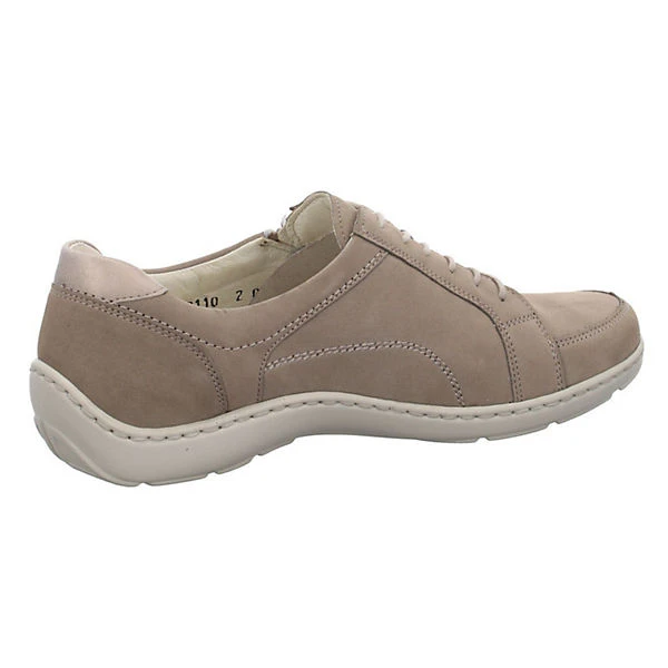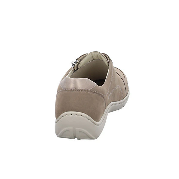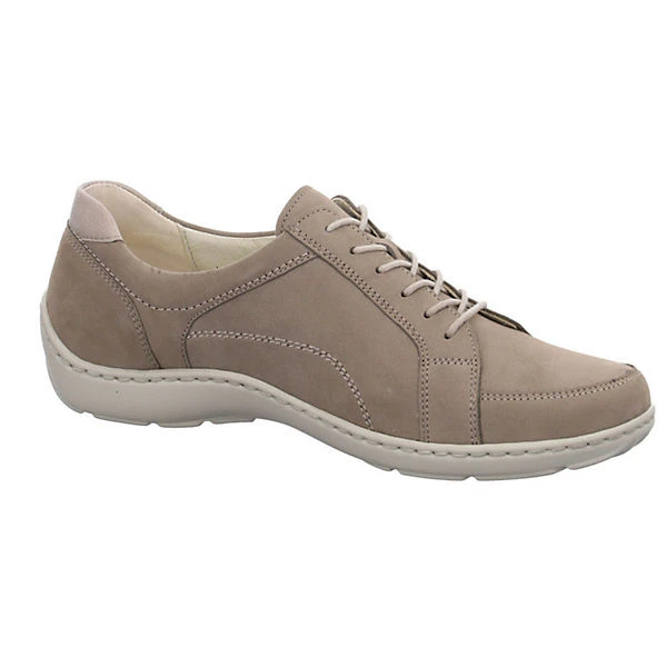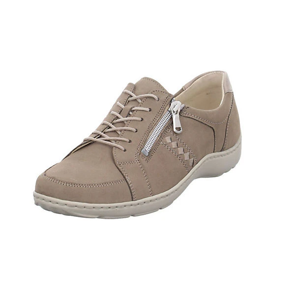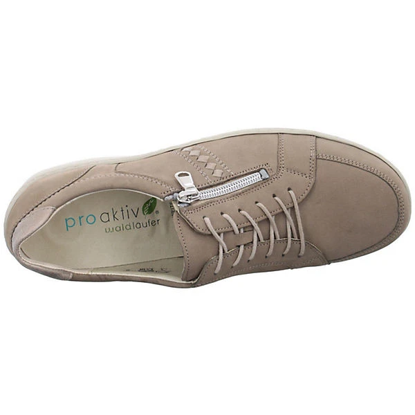 Bequemer Schnürschuh aus dem Hause Waldläufer. Die Kombination von taupefarbenem Nubukleder mit kleinen Ornamenten erlaubt Ihnen viele Kombinationsmöglichkeiten. Dank seiner hochwertigen Lederinnenausstattung und dem herausnehmbaren Wechselfußbett wird ein optimaler Tragekomfort garantiert. Der seitliche Reißverschluss erlaubt einen leichten Einstieg. Ein toller Begleiter für viele Gelegenheiten. In der bequemen Mehrweite H gefertigt, haben auch breitere Füße genügend Spielraum in diesem Modell.