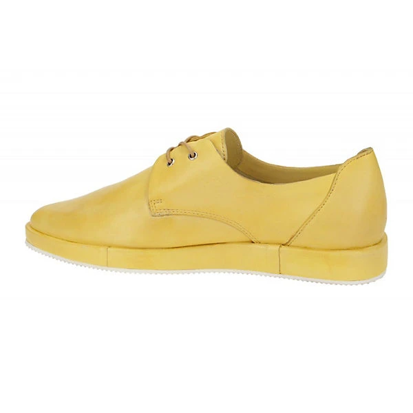Hersteller: Everybody Hersteller Art-Nr.: 23552A1455 giallo Modellname: CYDONIA Machart: Damenschuhe – sportliche Schnür- Halbschuhe Farbe: gelb + dunkel schattiert + Sohle in hellgrau (giallo) Obermaterial: Echtleder – Glattleder (Talco) Innenfutter: Echtleder – dünnes Leder Kaltfutter Innensohle: Echtleder – Fußbett Wechselfußbett: nicht herausnehmbare Innensohle Laufsohle: Gummisohle Verschluss: 2fach Schnürung Absatzart: Blockabsatz Schuhform: spitz Größenhinweis: fällt normal aus Weitenangabe: F – normal Weite