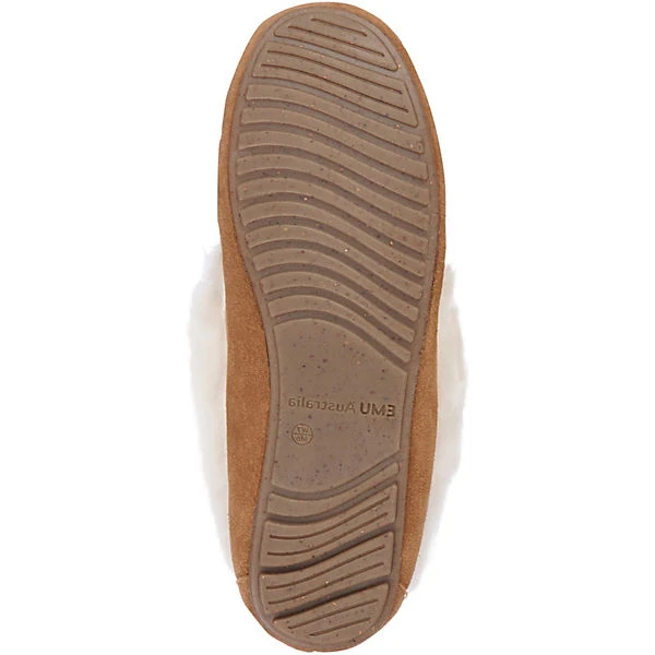 Bequem für daheim: die Lammfell-Hausschuhe von EMU Australia. Das Futter ist aus angenehm warmem, atmungsaktivem Lammfell. Die angeraute Oberfläche des Veloursleders erzeugt den besonderen Look und bietet zusätzlich eine höhere Atmungsaktivität als Glattleder. Das Schuhpaar kommt ohne Verschluss aus, sodass schnell und einfach hineingeschlüpft werden kann.