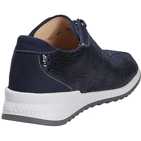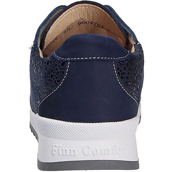 Schöner Comfort Damenschnürschuh der Marke Finn Comfort aus einer hochwertigen Nubukleder-Textilkombination. Es ist somit sehr leicht und atmungsactiv. Auch die textile Innenverarbeitung überzeugt durch ihre angenehm weiche Beschaffenheit. Die lederbezogene, gepolsterte Einlegesohle ist herausnehmbar.Somit können eigene Einlagen verwendet werden. Der Schnitt ist für breitere Füße (Weite H) geeignet. Der Keilabsatz hat eine Höhe von cirka 1 cm ,für gute Bodenhaftung sorgt die abriebfeste und griffige Gummisohle. Über den Schnürverschluß ist eine optimale Anpassung an den Fuß möglich. Durch die runde Schuhspitze wirkt der Schuh dezent am Fuß und bietet genügend Platz für die Fußzehen. Die Schuhgröße fällt regulär aus.
