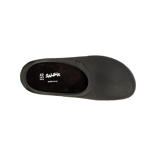 Der SALIHA® Multi Clog ein Clog für alle Fälle, im Beruf sowie in der Freizeit einsetzbar. Die leichte, flexible, wasser- und schmutzabweisenden Clog-Schale aus Polyurethan trotzt jedem Wetter und vielen Situationen im Alltag. Die speziell entwickelte Profilsohle, die nicht nur durch die Rutschhemmung einen sicheren Stand garantiert, sondern aus der sich durch die Gehbewegung automatisch der Schutz löst. Das anatomisch geformte Fußbett aus PU ist äußerst bequem, herausnehmbar und bei 30° C abwaschbar.