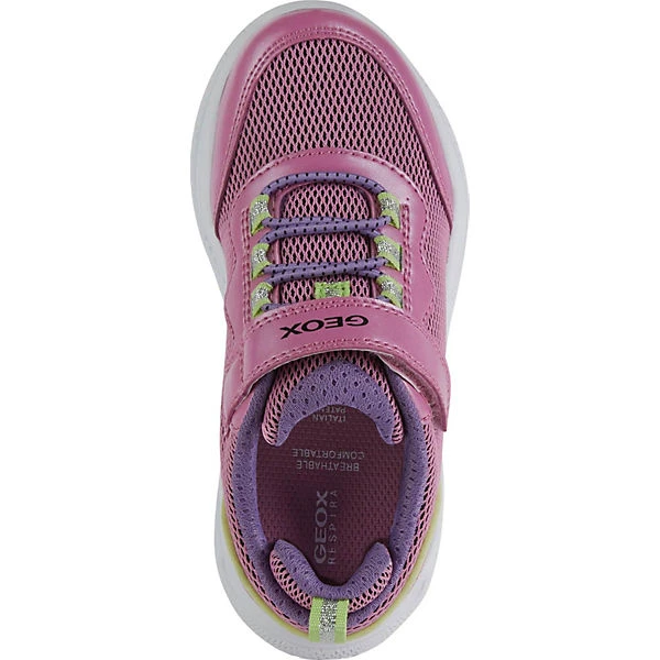 Die Low Sneakers von der Marke GEOX ermöglichen es Kindern, unbekümmert Abenteuer zu erleben. Ein schnelles Hineinschlüpfen ist durch den Klettverschluss ein Leichtes. Diese Schuhe punkten mit einem Futter aus Polyester. Das Fußbett ist bei Bedarf herausnehmbar. Die Aufmachung dieses Paares wird durch das textile Obermaterial unterstrichen. Atmungsaktive Eigenschaften sowie Belüftungsperforationen in Deck- und Laufsohle bewirken ein angenehmes Klima.