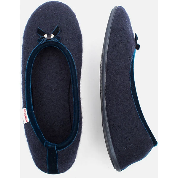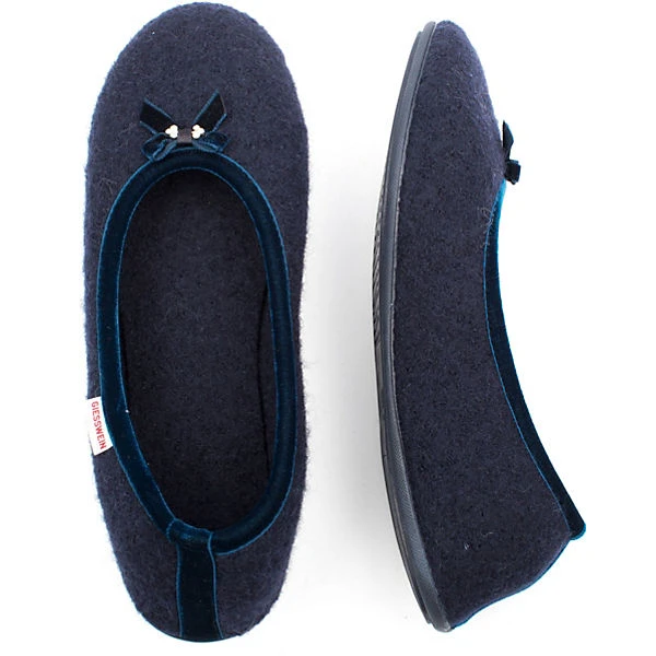 Schlichter Damen-Ballerina-Hausschuh in verschiedenen Farben mit Schleifchen und Strass-Steinen. Die süßen Filzpantoffeln für Damen sind in den Farben blau, grau oder schwarz erhältlich und immer ein absoluter Hingucker! Dank der festen Sohle eignen sich diese Hausschuhe auch für den kurzen Gang nach Draußen auf die Terrasse oder den Balkon.