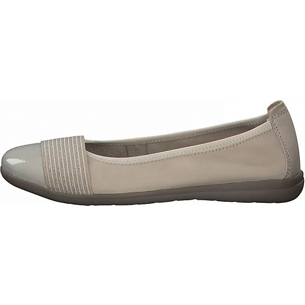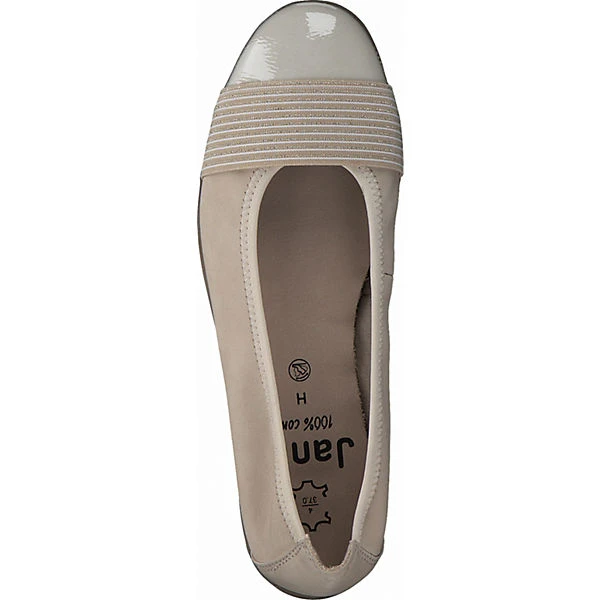 Ergänzen verschiedenste Looks: Die modisch gestalteten Ballerinas der Marke Jana. Für ein angenehmeres Tragegefühl besteht die Decksohle aus Leder. Es handelt sich um ein Modell zum flinken Hineinschlüpfen.