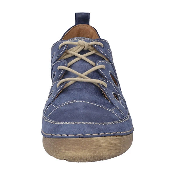 Frühling und Sommer ist einfach die Zeit der Halbschuhe. Genieße diese schöne Zeit im Jahr mit diesem blauen Damen-Halbschuh. Die praktische Schnürung gibt dem Fuß beim Gehen und Stehen besten Halt. Unser Modell hat eine herausnehmbare Einlegesohle zum Wechseln. Versehen ist das Modell darüber hinaus mit einer hochwertigen Handnaht. Mit der Weite G ist der Halbschuh Fergey 36 außgesprochen komfortabel. Besonders in der Freizeit – mit unserem alltagstauglichen Begleiter findest Du Deinen Weg!
