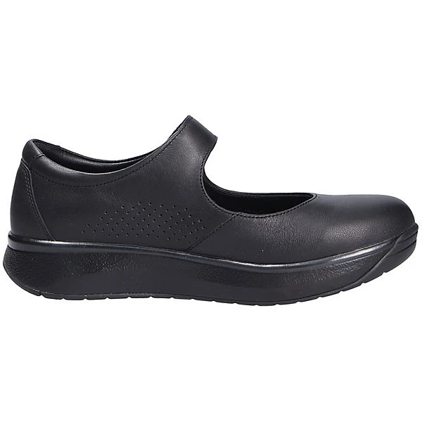 Als bequemer Damenslipper ist der AUDREY BLACK II der Marke JOYA für den Alltag die absolut richtige Wahl. Angenehm weich liegt das hochwertige Glattleder am Fuß und verleiht dem Schuh einen besonderen Look. Das exzellente Innenleben aus bestem Leder gibt Ihnen ein erholsames Gefühl an langen Tagen. Die patentierte Ortholite Support Einlegesohle ist sehr leicht und stark atmungsaktiv. Sie besteht aus einem PU-Schaum mit EVA-Verstärkung im Fersen- und Mittelfußbereich für zusätzliche Stabilität.Natürlich ist die Sohle herausnehm- und auswechselbar. Geschnitten ist der Schuh für etwas breitere Füße (Weite G). Der Keilabsatz hat eine Höhe von cirka 1 cm ,die Sohlenkategorie emotion steht für Freude am Stehen und Gehen.Die weich-elastische Joya Sohle dämpft jeden Stoß ab und unterstützt dadurch effektiv die Entlastung von Rücken und Gelenken. Das Ergebnis: ein einzigartiger Gehkomfort. Ideal für Menschen, die sich und ihre Füße mit einem einzigartig weichen Geh-Gefühl verwöhnen wollen.Die emotion-SENSO Technologie ist besonders weich im Fersen- und Vorfußbereich und bietet durch die starke Dämpfung eine optimale Entlastung.Besonders geeignet für Menschen mit sensiblem Rücken und täglich stark belasteten Füßen und Gelenken. Durch die runde Schuhspitze wirkt der Schuh dezent am Fuß und bietet genügend Platz für die Fußzehen. Die Schuhgröße fällt regulär aus.