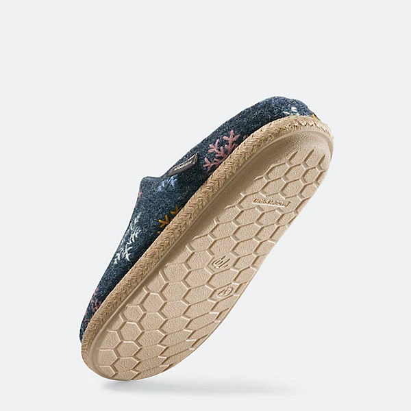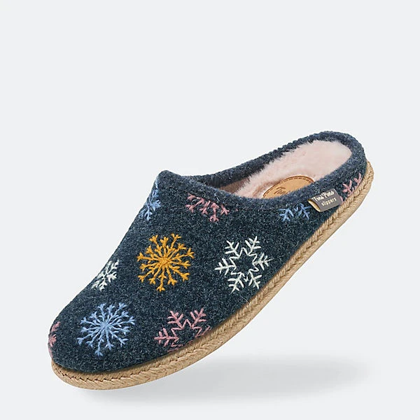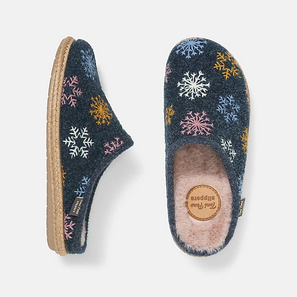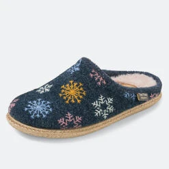 Damenpantoffel aus unifarbenem Filz, bestickt mit winterlichen Motiven. Die Innensohle ist mit weichem Kunstfell gefüttert. Die 1 cm dicke Flachsohle ist aus Gummi und geflochtener Jute. Er hat eine herausnehmbare Innensohle mit einem 2,5 cm Keil an der Ferse, der in die Außensohle passt und dem Hausschuh eine Gesamthöhe von 3,5 cm verleiht. Dieses Modell entspricht der Größe; Wenn Sie zwischen zwei Größen liegen, wählen Sie die kleinere Größe. Wir empfehlen, diese Hausschuhe nicht in der Maschine zu waschen. Seit 40 Jahren stehen BÄR Schuhe mit 100% Zehenfreiheit für gesundes und natürliches Gehen. Die maximale Zehenfreiheit gibt dem Fuß seine natürliche Stärke zurück. Sie gewinnen Kraft für lange Wege. Der befreite Fuß unterstützt Ihre Körperbalance und entlastet die Wirbelsäule. So fühlen Sie sich vom ersten Schritt an entspannt. Den ganzen Tag.