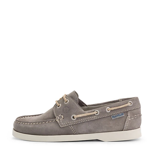 Dieser ungefütterte Mokassin aus der nautischen Damenkollektion von Travelin‘ ist aus hochwertigem Veloursleder gefertigt und verfügt über trendige Schnürdetails. Das herausnehmbare Fußbett und die robuste Gummisohle sorgen für zusätzlichen Komfort. Der Penzance ist in den Farben grau, hellbraun und navy erhältlich.