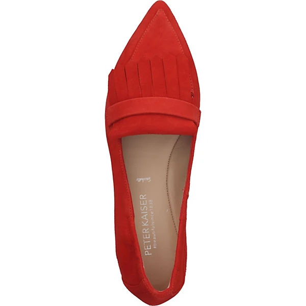 Ob zum Business-Outfit, Rock oder lässig zur Jeans: Dieser modische Slipper von Peter Kaiser ist garantiert ein Blickfang! Das Besondere an diesem Modell sind die spitze Zehenkappe und die dekorativen Fransen am Vorderblatt. Der Elastikeinsatz an der Fersenkante ermöglicht eine optimale Flexibilität und einen entspannten Einstieg. Für hohen Komfort sorgt die angenehm gepolsterte Lederdecksohle sowie die flexible Laufsohle.