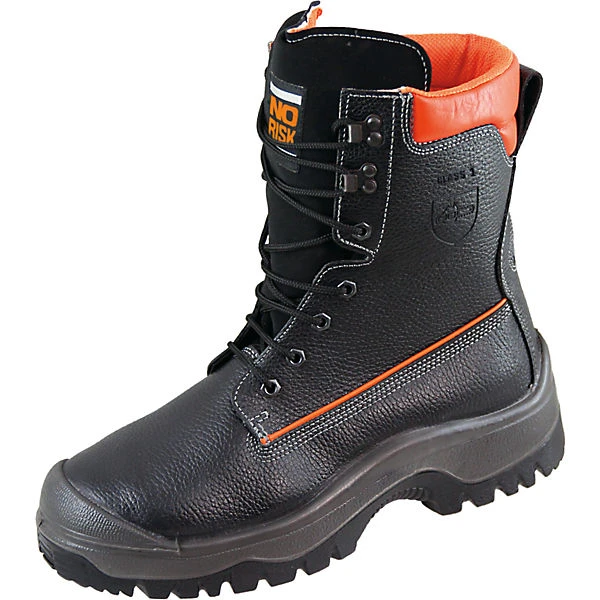 Sicherheitsklasse: EN ISO 20345:2011 S3 / EN ISO 17249:2004 Klasse 1, Zehenschutz: Stahlkappe, Durchtrittschutz: Kevlarzwischensohle, Obermaterial: Rindleder, Farbe: schwarz/orange, Innenfutter: atmungsaktives Dri-lex Funktionsfutter, Sohle: PU/PU-Sohle, Extras: Schnittschutzklasse 1, Überkappe, Klima-Kork-System, Lederbrandsohle