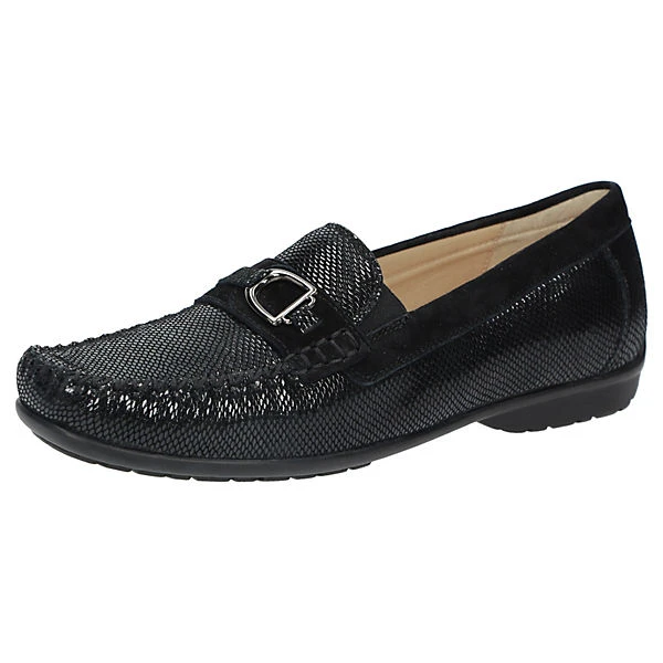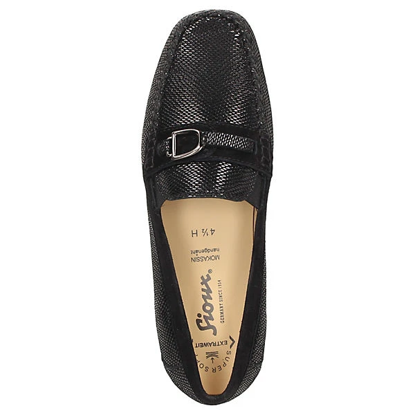 Märchenhaft bequemer Damen-Mokassin-Slipper aus einer noblen Kombination aus Ziegenleder in Schlangenoptik und Ziegenvelour – in Schuhweite H für vollere Füße, in optimaler Passform und zeitloser Eleganz. Innen ausgestattet mit Lederfutter und weich gepolsterter, durchgehender Leder-Decksohle – auch geeignet zum Austausch mit der eigenen Einlage. Weiche und feine Gummisohle mit flachem Absatz. Ein typischer Damen-Mokassin von Sioux: seit Jahren ein gerne gekaufter Bestseller.