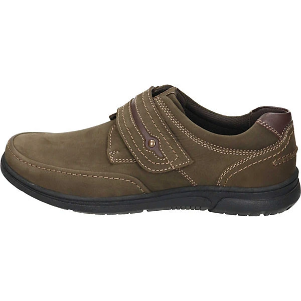 Bei diesem Produkt handelt es sich um einen Schuh aus der Kategorie Komfort-Slipper für Herren. Als Obermaterial wurde Glattleder verwendet und im inneren Bereich des Schuhs wurde Textilfutter und herausnehmbare Textildecksohle verarbeitet. Die Schuhweite dieses Artikels ist bequeme Weite und somit etwas breiter. Als Verschlussart wurde Klettverschluss gewählt und die TR-Sohle rundet das Produkt ab.
