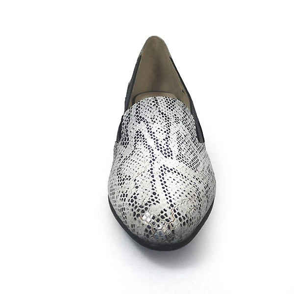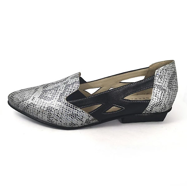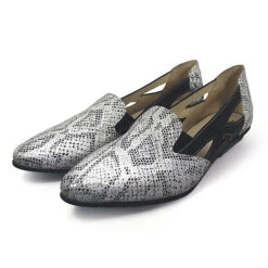 Dieser extravagante Slipper im Pantoffelschnitt besticht durch sein ausgefallenes Leder. Der Schuh mit einer Absatzhöhe von 2 cm und einer 3 mm Topflexsohle lädt zum Stadtbummel ein. Das Innenleder ist 100 % Bioleder und mit einer bequemen 3 mm Eva-Innensohle gepolstert. Auch barfuß kann der Schuh bedenkenlos getragen werden.