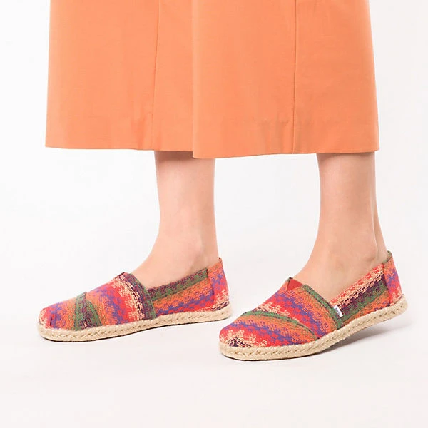Unterstreichen Ihren Look: Diese trendigen Espadrilles von TOMS. Es handelt sich um ein Modell zum schnellen und einfachen Hineinschlüpfen. Das Textil-Futter bestehend aus Baumwolle passt sich optimal an die Füße an und ist zugleich äußerst anschmiegsam. Die textile Oberfläche unterstützt die Gestaltung dieses Schuhs.