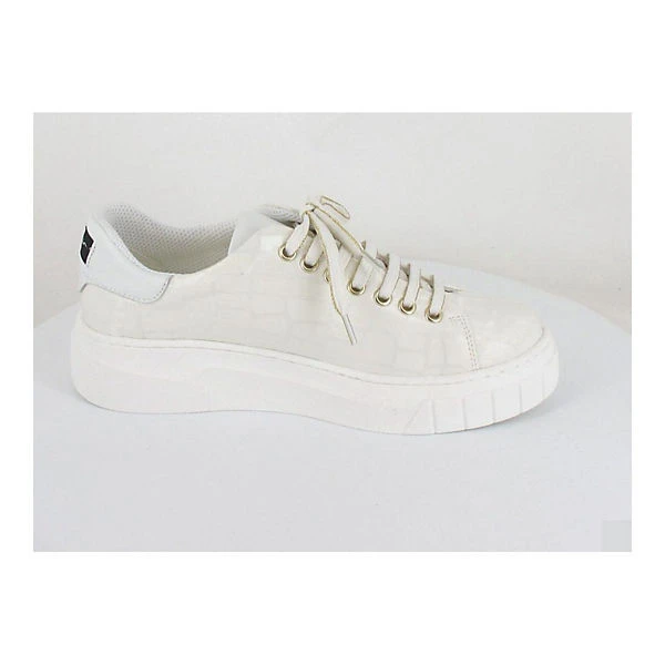 – auffällig verarbeiteter Sneaker von Toscablu für Damen – mit Gold verzierte Schnürung und das Muster machen den Schuh zum Hingucker – etwas höhere Plateau Sohle – rutschhemmende Laufsohle