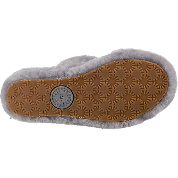 Diese komfortablen Lammfell-Hausschuhe der Marke UGG bewirken ein angenehmes Tragegefühl. Es handelt sich um ein Modell zum schnellen Hineinschlüpfen. Das Futter besteht aus warmen, feuchtigkeitsauchgleichemdem Lammfell. Das Obermaterial zeichnet sich durch das feine, echte Schafsleder aus.