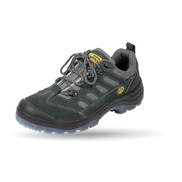 Sicherheitsschuh S1P, atmungsaktives Nubukleder, Stahlkappe, antistatisch, gepolsterte Decksohle, robuste rutschhemmende Laufsohle (öl- und benzinbeständig) Nubukleder: grau/schwarz