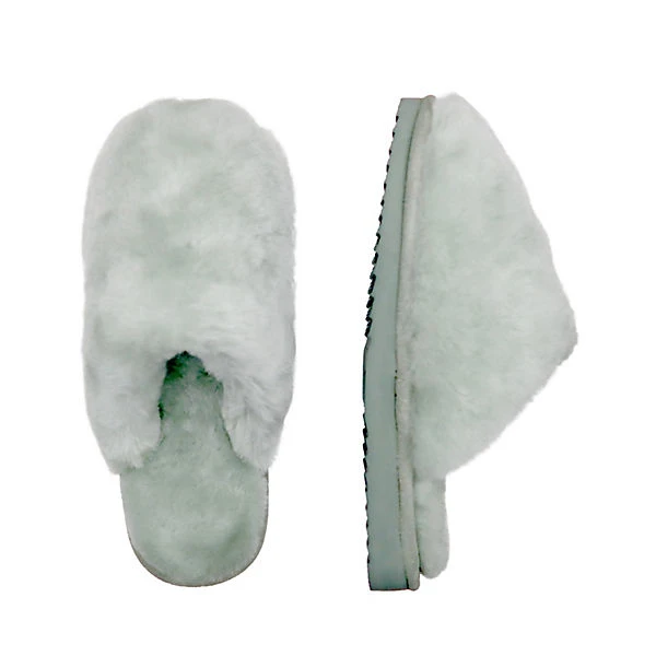 Der Pantoffel für Damen besteht aus 100 % Schaffell von australischen Merinoschafen. Die robuste und flexible Gummisohle bietet Halt und Komfort auch auf harten Böden, wie Fliesen.