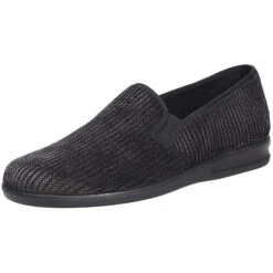 Herrenhausschuh von Westland aus einem hochwertigen Textil. Auch die textile Innenverarbeitung überzeugt durch ihre angenehm weiche Beschaffenheit. Die aus Textil bestehende Decksohle bettet den Fuß angenehm. Geschnitten ist der Schuh für etwas breitere Füße (Weite G). Der Keilabsatz hat eine Höhe von cirka 1 cm ,die aus einem weichen PU-Material bestehende Laufsohle schont die Gelenke und federt jeden Tritt optimal ab. Die karree-förmige Schuhform hat zwei Vorteile: Sie wirkt sportlich und bietet einen angenehmen Tragecomfort für den Fuß und die Fußzehen. Die Schuhgröße fällt regulär aus.